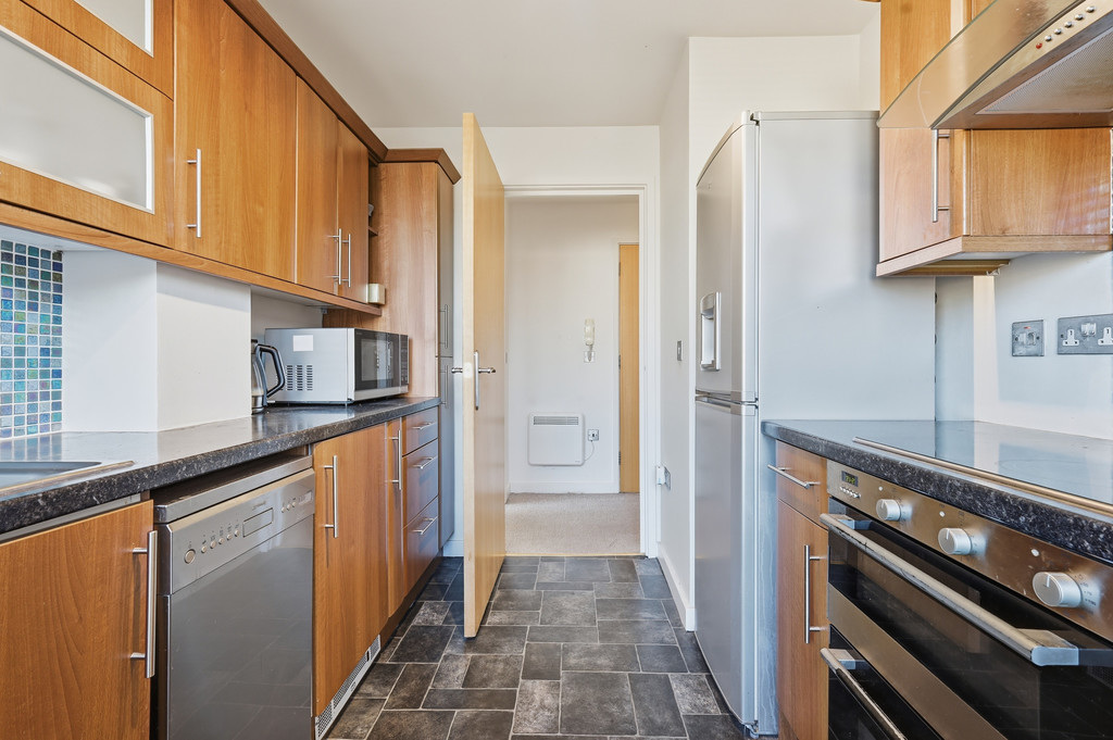 The modern kitchen is well-appointed with ample storage and worktop space, while the bedroom provides a comfortable retreat with plenty of room for furnishings. The bathroom is clean and contemporary, completing a well-designed layout ideal for singles or couples.