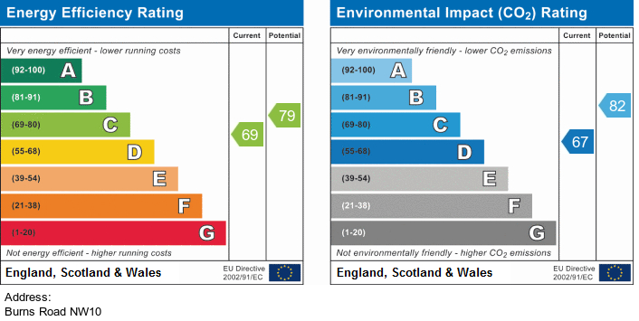 Burns Road is ideally positioned close to all the local amenities of Harlesden and within easy reach of a wide selection of shops, bars and restaurants of Willesden Junction. Maple Walk school and Roundwood Park open space are only a few minutes walk from the property. The nearest station is Harlesden (Bakerloo line / Overground).