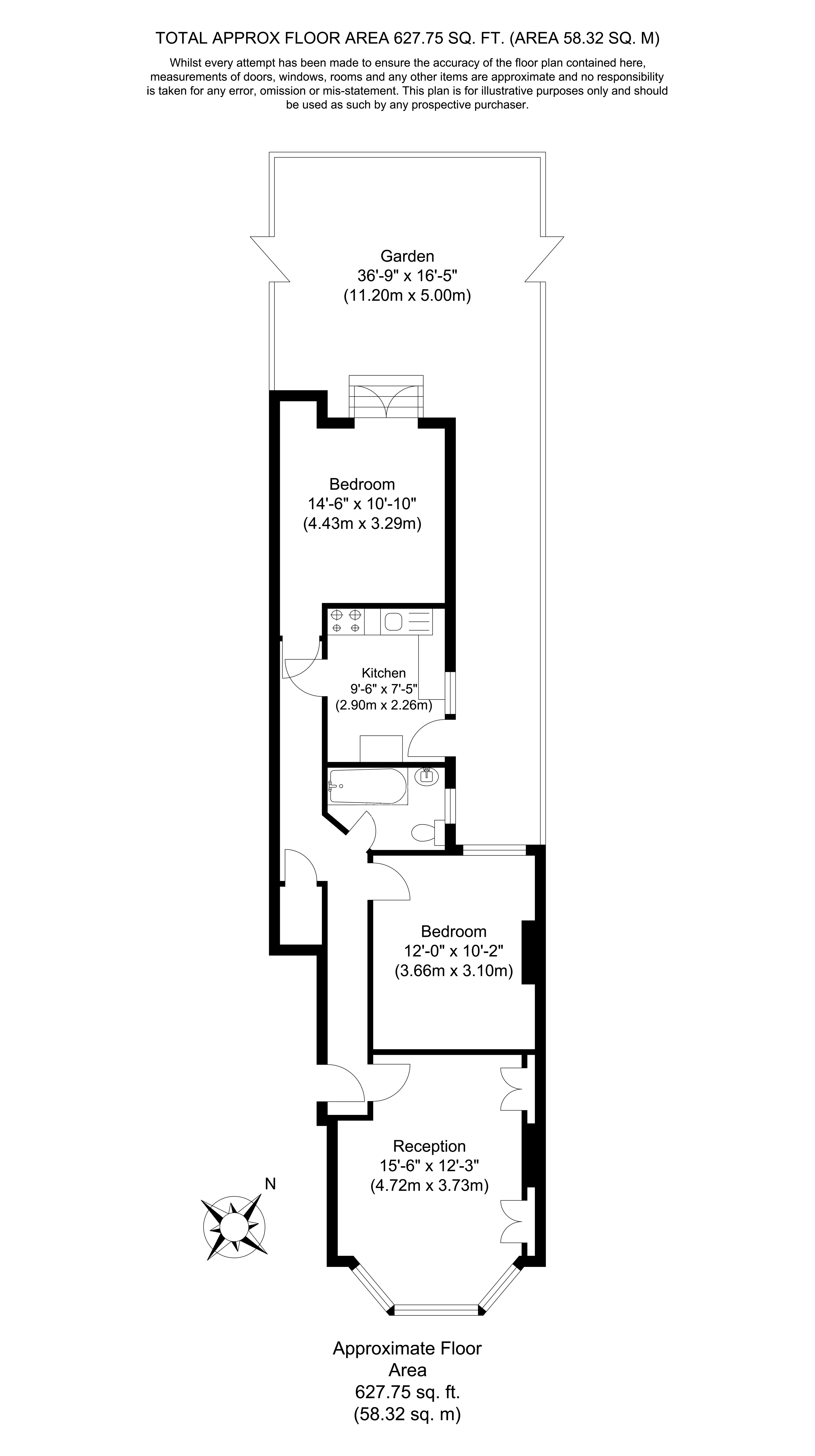 There is access from the kitchen and the back bedroom to a charming and well maintained 40ft (approx.) south facing garden. Full of character, the property also benefits from double glazed windows, carpet throughout and an abundance of light and storage space.