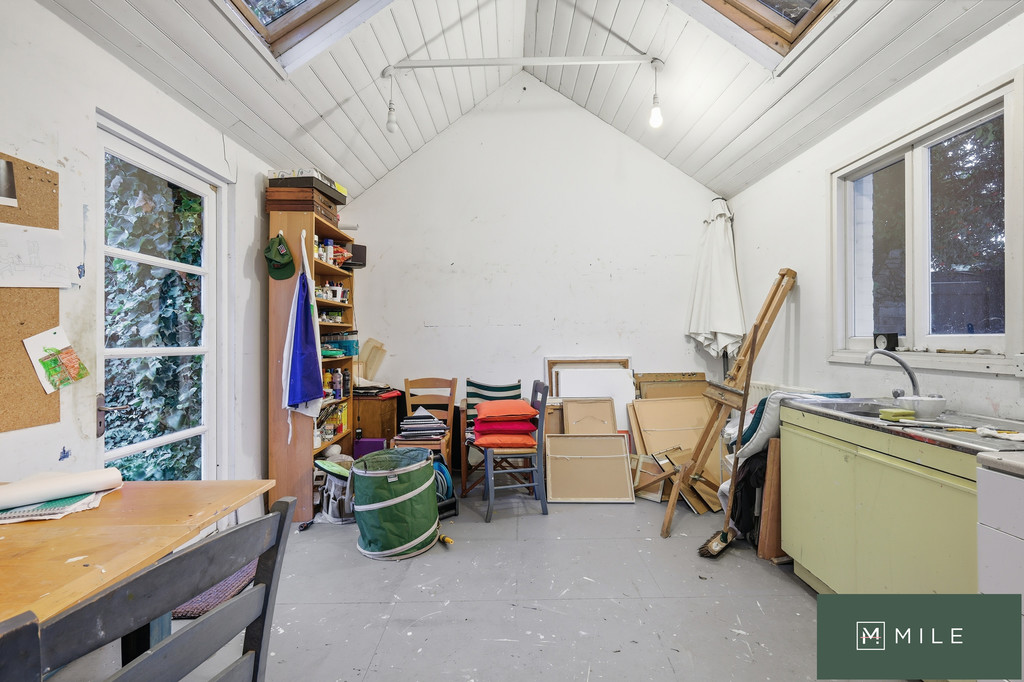 A rare and valuable addition to the property is the garage, currently serving as a stylish home studio. With access from the side street, it's ideal for those needing a workspace to meet clients without entering the main house.