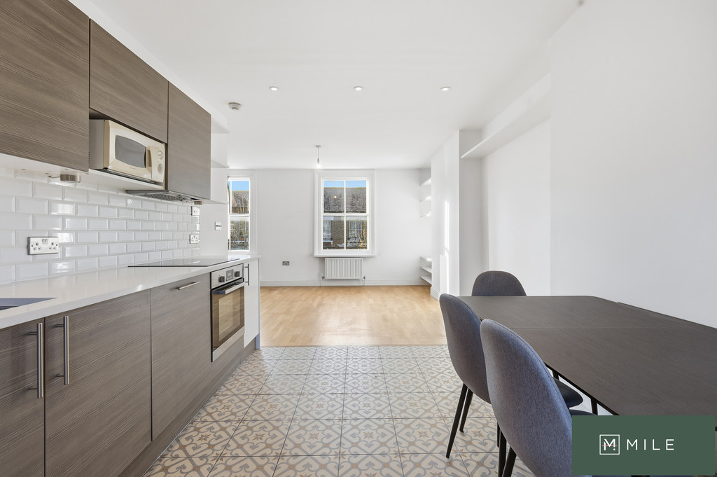 This beautifully arranged home offers a highly desirable layout, featuring an open-plan kitchen and reception area that enjoys dual aspect light from the east and west, creating a bright and inviting living space with generous proportions. There are two well-sized double bedrooms, both thoughtfully positioned for privacy, along with two modern bathrooms and useful built-in storage throughout.